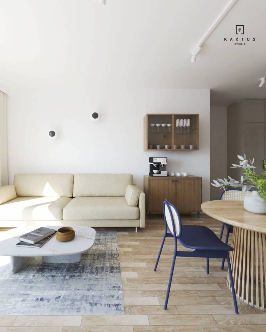 Dwupokojowe mieszkanie na nowym, dobrze skomunikowanym osiedlu w Krakowie, zostało zaprojektowane z myślą o konkretnej grupie odbiorców - pracownikach pobliskiej korporacji, którzy szukają wygodnej i funkcjonalnej przestrzeni do życia.